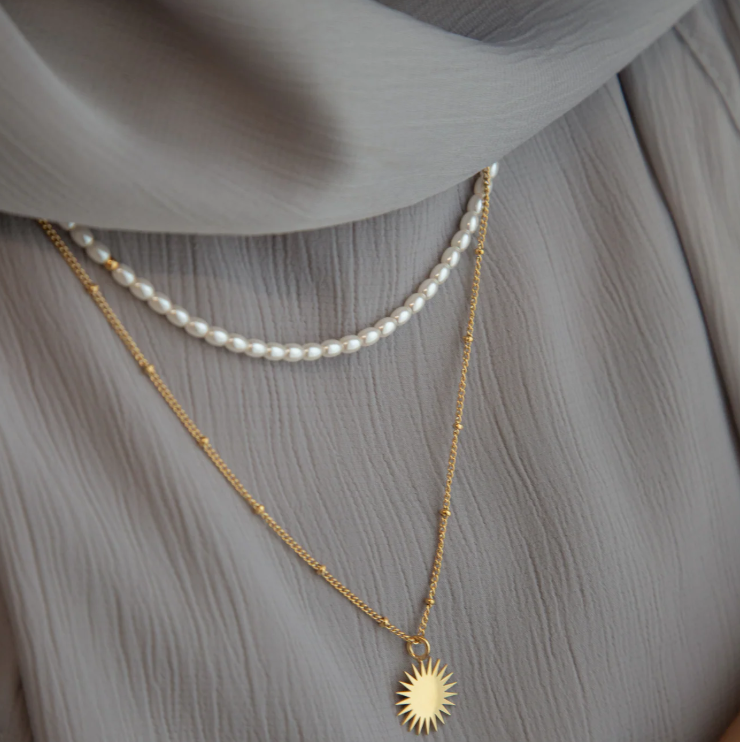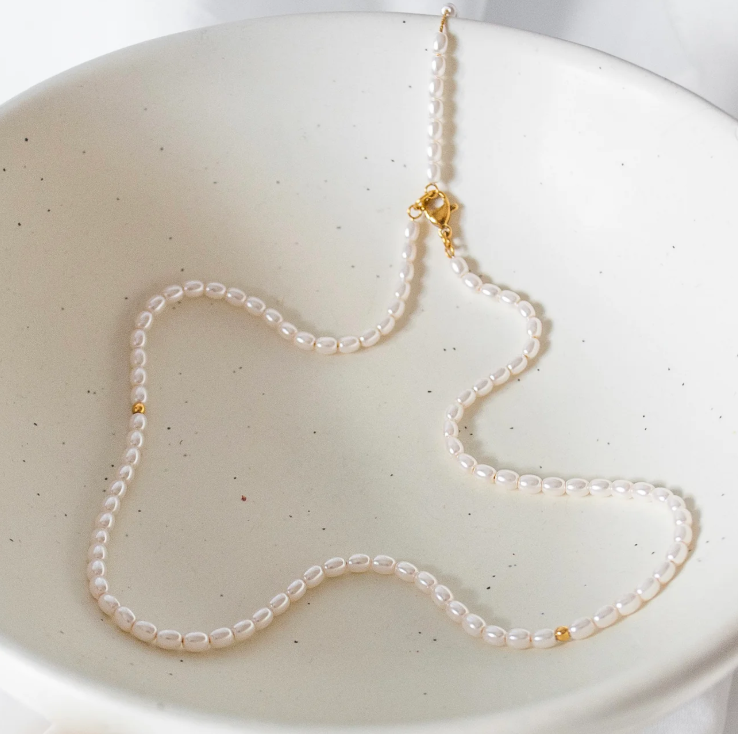 El Collar DALIA nace para honrar la delicadeza, la luz interior y la suavidad que florece en cada persona. Su diseño, compuesto por pequeñas perlas ovaladas que se entrelazan en una armoniosa secuencia, evoca pureza, calma y una belleza sutil que nunca pasa desapercibida.
